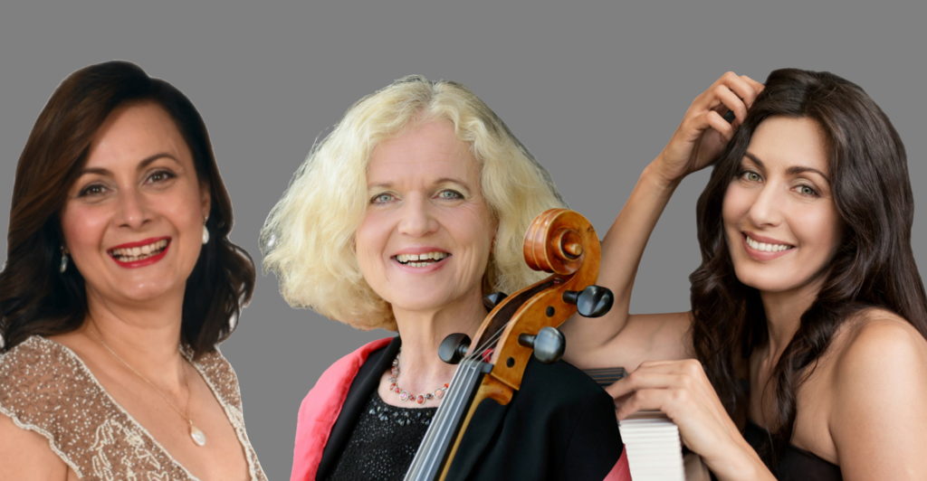 mit populärer Musik von Manuel de Falla, Manos Hadjidakis, Federico García Lorca, Astor Piazzolla u.a. – Maria Kaffee (Sopran); Claudia Schwarze (Cello) und Yuliya Peters (Klavier)